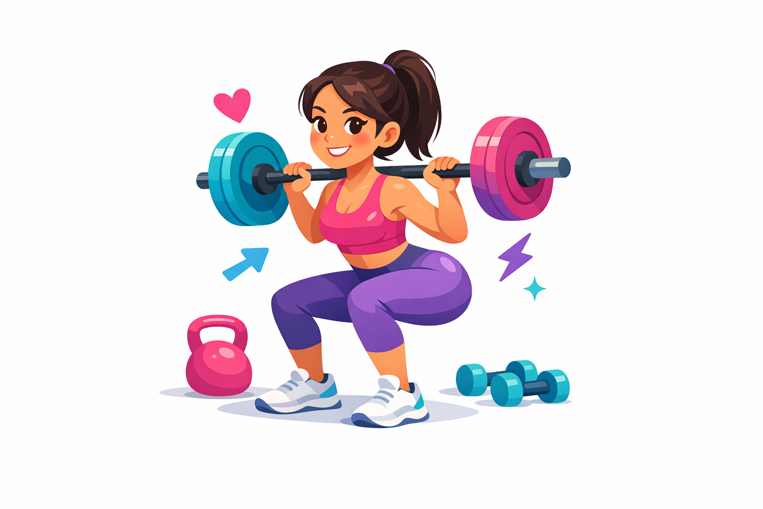 • You’ll have barbells, plates, benches, a squat rack, cables, and machines. Perfect for hip thrusts, squats, RDLs, lunges, and cable kickbacks.