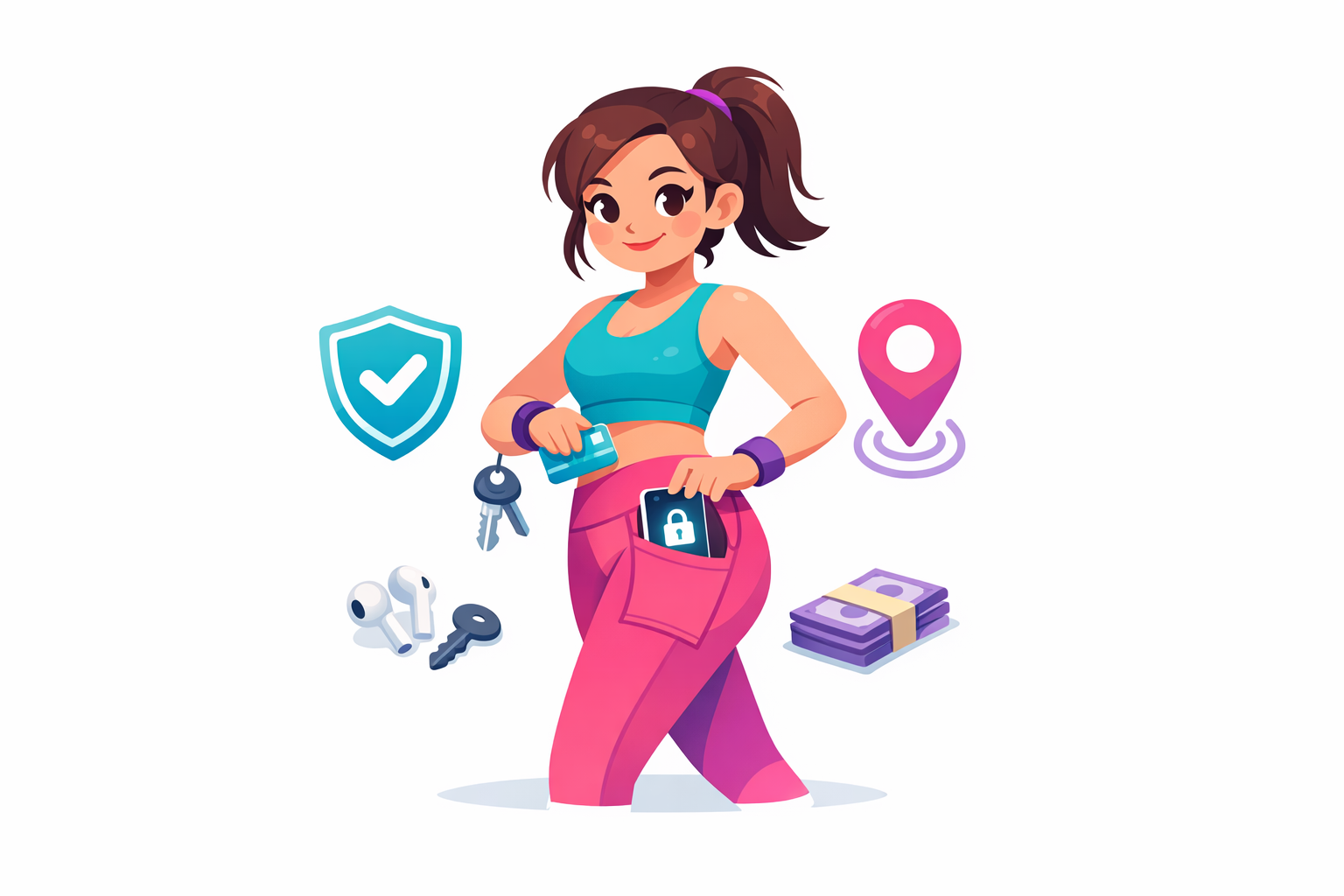 • Cards and cash: Best in a zip pocket or an inner waistband stash so they cannot slide out during a stretch.